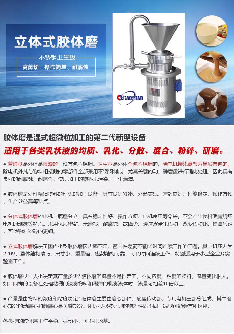 5、綜合考慮設(shè)備的成本 昊星HAOSTARS精品型膠體磨,立式膠體磨-食品衛(wèi)生級(jí)膠磨機(jī)、濕磨機(jī)
